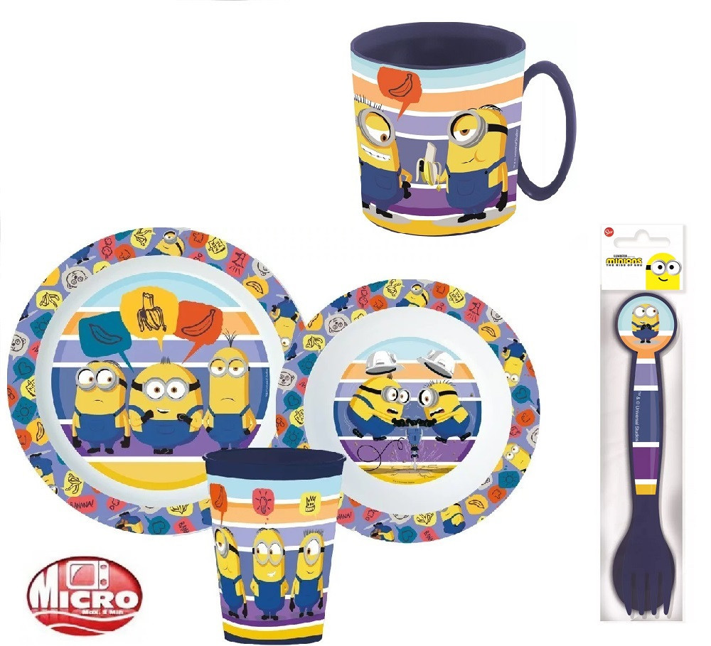 Minions - Minyonok micro gyerek étkészlet + evőeszköz szett