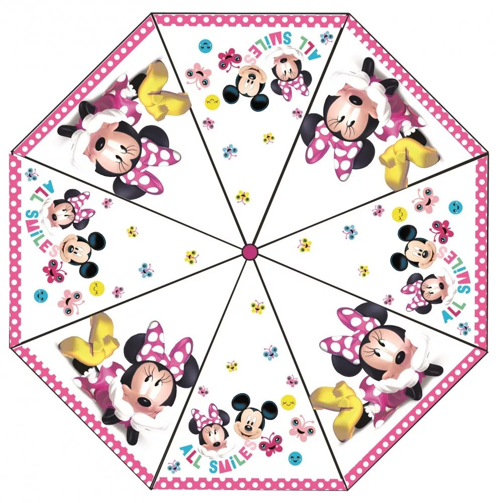 A Minnie egér rajóknak tökéletes választás ez a csajos esernyő, hogy védelmül szolgáljon az esős időkben. Az esernyő könnyen kezelhető, egy mozdulattal ki- és össze lehet csukni, így még a legkisebb gyerkőcök is biztonsággal tudják használni.