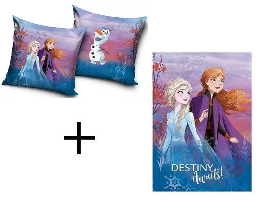 A Jégvarázs 2 animációs mese új kollekciójának mintája látható ezen takaró és párna szetten. Elza és Anna rajongóinak tökéletes választás!